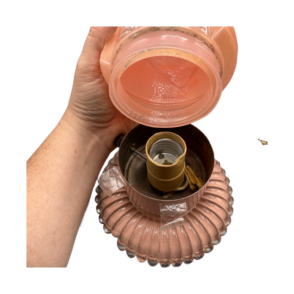 Set of 3 Pink Glass Art Deco Bedroom Lamps