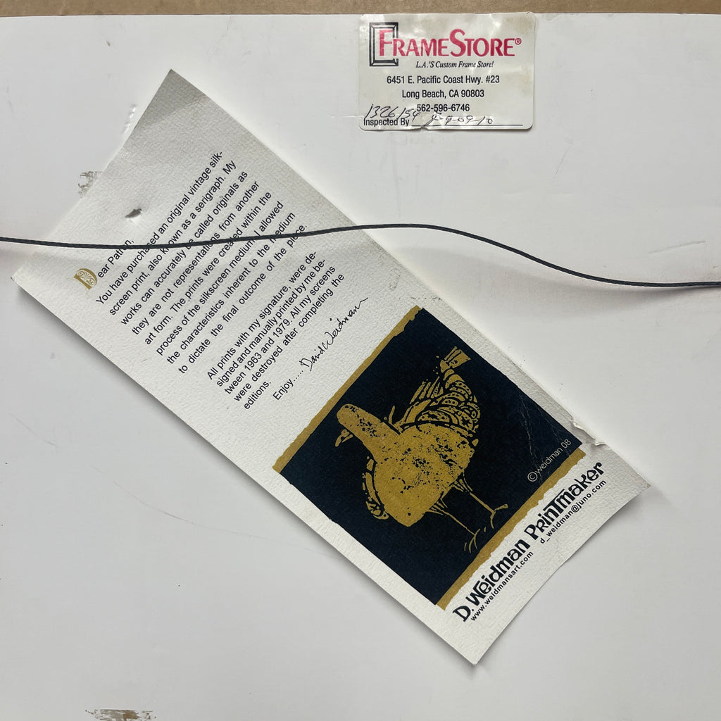 Mid Century Modern David Weidman Framed Cat Serigraph
